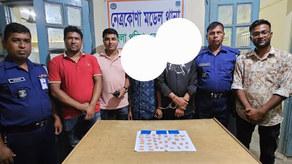 উভয় থানা ও জেলা- নেত্রকোনাদেরকে গ্রেফতার করে। এসময় আল আমিন এর বসত ঘর হইতে তল্লাশী করে মোট ৪১০ (চারশত দশ) পিস নেশাজাতীয় ইয়াবা ট্যাবলেট, মূল্য অনুমান- ২০৫০০০/-( দুই লক্ষ পাঁচ হাজার) উদ্ধার করে